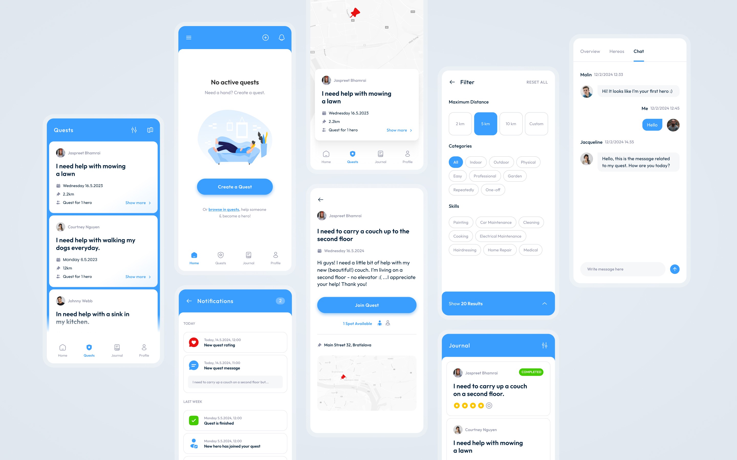 Mobile app design for an MVP of a community-oriented application. I've covered everything from UI/UX to branding and web design.
